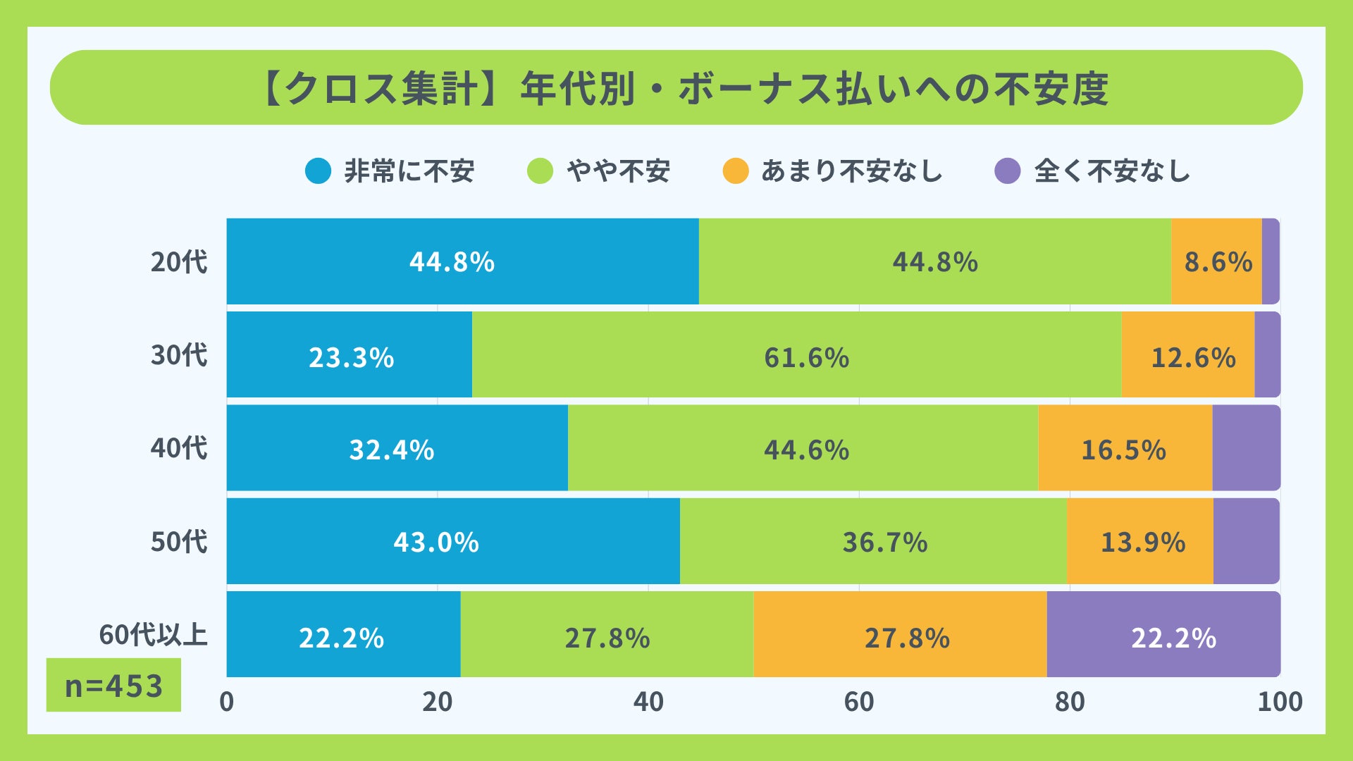 1. 8割以上がボーナス払いに不安、若年層では約9割に