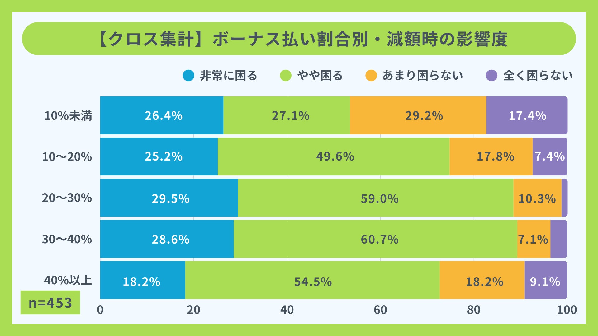 【クロス集計】ボーナス払い割合別・減額時の影響度