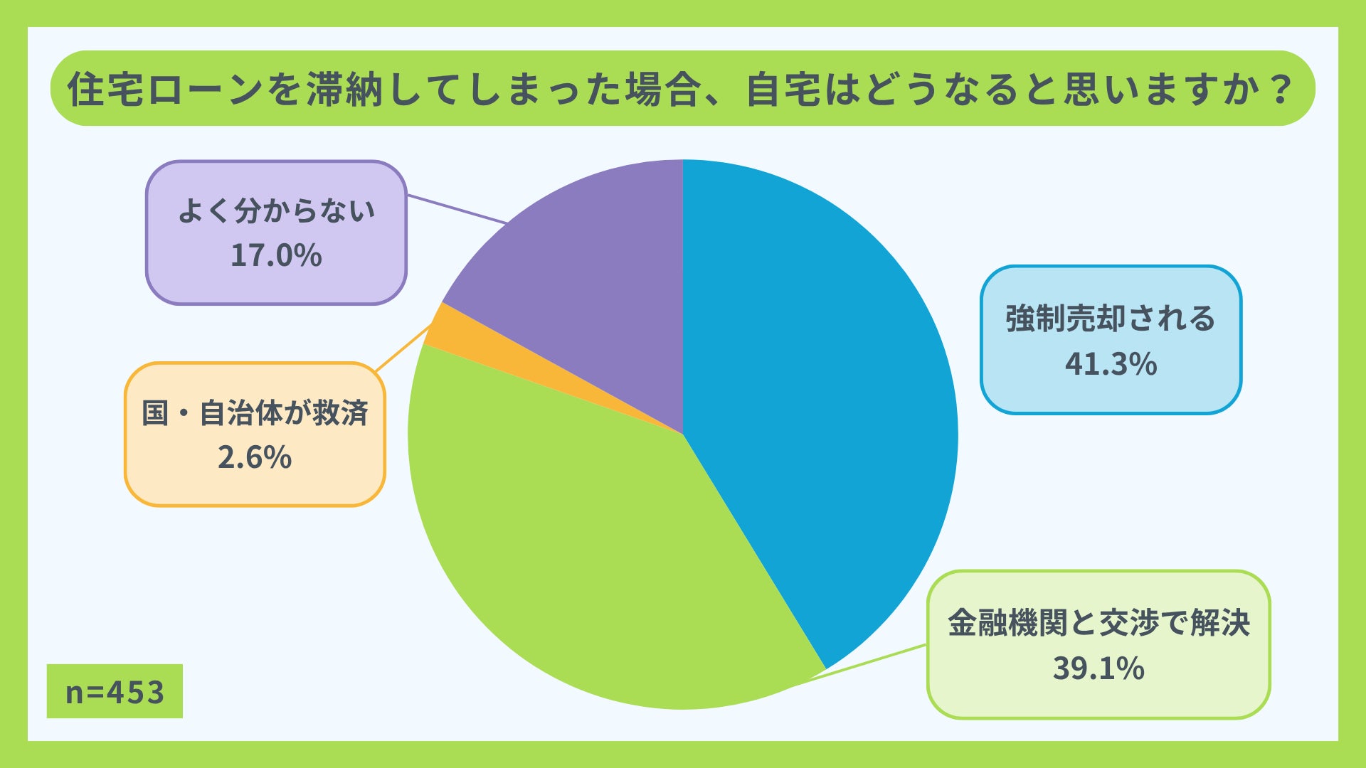 さらに、返済を滞納した場合でも「金融機関と話し合えば解決できる」「国や自治体が助けてくれる」と考える方が4割以上(41.7%)存在し、競売リスクへの認識不足が浮き彫りになりました。